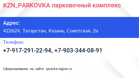KZN_PARKOVKA, парковочный комплекс по адресу 422624, Татарстан, Казань, Советская, 2а в дальнейшем Организация, размещена в следующих категориях: