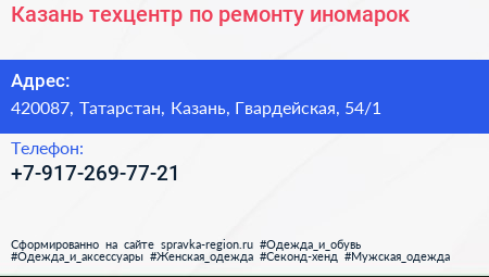 Казань, техцентр по ремонту иномарок по адресу 420087, Татарстан, Казань, Гвардейская, 54/1 в дальнейшем Организация, размещена в следующих категориях: