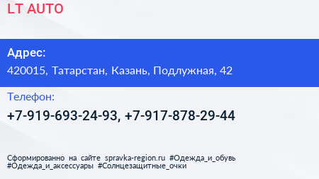 LT-AUTO по адресу 420015, Татарстан, Казань, Подлужная, 42 в дальнейшем Организация, размещена в следующих категориях:
