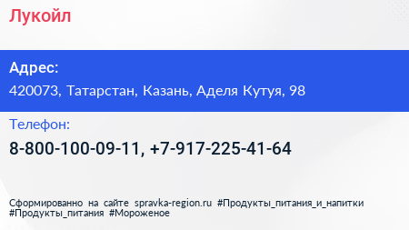 Лукойл по адресу 420073, Татарстан, Казань, Аделя Кутуя, 98 в дальнейшем Организация, размещена в следующих категориях: