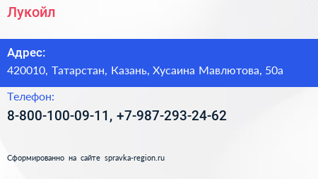 Лукойл по адресу 420010, Татарстан, Казань, Хусаина Мавлютова, 50а в дальнейшем Организация, размещена в следующих категориях: