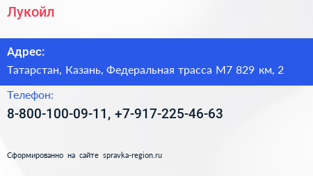 Лукойл по адресу Татарстан, Казань, Федеральная трасса М7 829 км, 2 в дальнейшем Организация, размещена в следующих категориях: