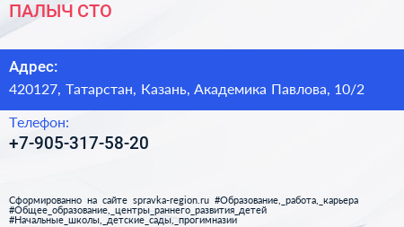 ПАЛЫЧ, СТО по адресу 420127, Татарстан, Казань, Академика Павлова, 10/2 в дальнейшем Организация, размещена в следующих категориях: