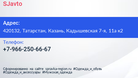 SJavto по адресу 420132, Татарстан, Казань, Кадышевская 7-я, 11а к2 в дальнейшем Организация, размещена в следующих категориях: