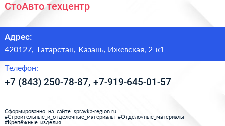 СтоАвто, техцентр по адресу 420127, Татарстан, Казань, Ижевская, 2 к1 в дальнейшем Организация, размещена в следующих категориях: