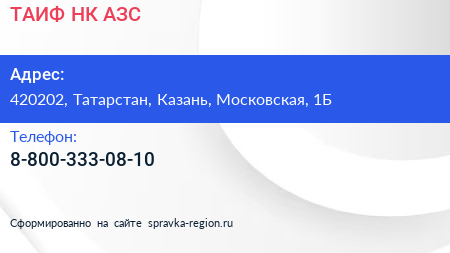ТАИФ-НК АЗС по адресу 420202, Татарстан, Казань, Московская, 1Б в дальнейшем Организация, размещена в следующих категориях: