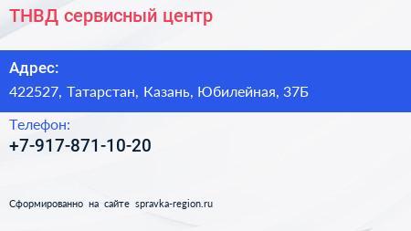 ТНВД, сервисный центр по адресу 422527, Татарстан, Казань, Юбилейная, 37Б в дальнейшем Организация, размещена в следующих категориях: