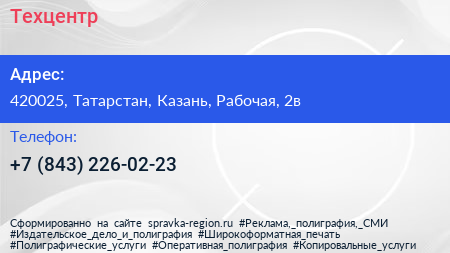 Техцентр по адресу 420025, Татарстан, Казань, Рабочая, 2в в дальнейшем Организация, размещена в следующих категориях: