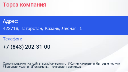 Торса, компания по адресу 422718, Татарстан, Казань, Лесная, 1 в дальнейшем Организация, размещена в следующих категориях: