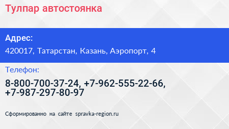 Тулпар, автостоянка по адресу 420017, Татарстан, Казань, Аэропорт, 4 в дальнейшем Организация, размещена в следующих категориях: