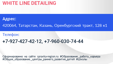 WHITE LINE DETAILING по адресу 420064, Татарстан, Казань, Оренбургский тракт, 128 к1 в дальнейшем Организация, размещена в следующих категориях: