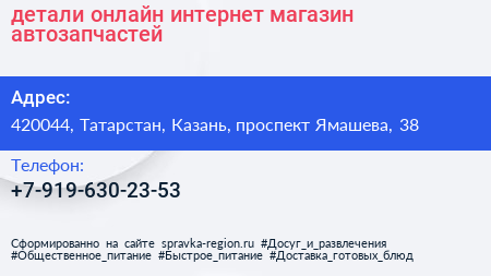 детали.онлайн, интернет-магазин автозапчастей по адресу 420044, Татарстан, Казань, проспект Ямашева, 38 в дальнейшем Организация, размещена в следующих категориях: