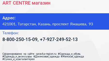 ART CENTRE, магазин по адресу 421001, Татарстан, Казань, проспект Ямашева, 93 в дальнейшем Организация, размещена в следующих категориях: