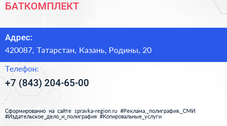 БАТКОМПЛЕКТ по адресу 420087, Татарстан, Казань, Родины, 20 в дальнейшем Организация, размещена в следующих категориях: