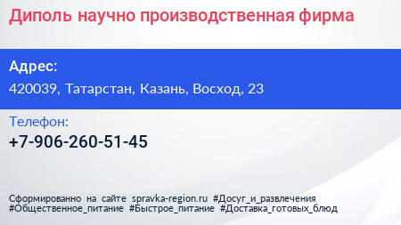 Диполь, научно-производственная фирма по адресу 420039, Татарстан, Казань, Восход, 23 в дальнейшем Организация, размещена в следующих категориях: