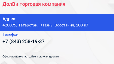 ДолВи, торговая компания по адресу 420095, Татарстан, Казань, Восстания, 100 к7 в дальнейшем Организация, размещена в следующих категориях: