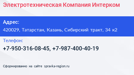 Электротехническая Компания Интерком по адресу 420029, Татарстан, Казань, Сибирский тракт, 34 к2 в дальнейшем Организация, размещена в следующих категориях: