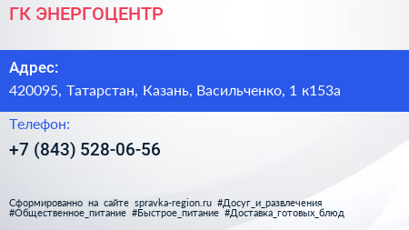 ГК ЭНЕРГОЦЕНТР по адресу 420095, Татарстан, Казань, Васильченко, 1 к153а в дальнейшем Организация, размещена в следующих категориях: