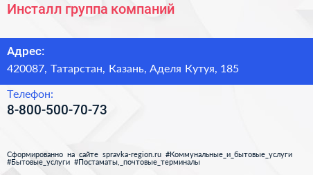 Инсталл, группа компаний по адресу 420087, Татарстан, Казань, Аделя Кутуя, 185 в дальнейшем Организация, размещена в следующих категориях: