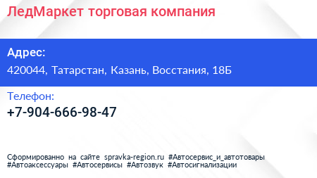 ЛедМаркет, торговая компания по адресу 420044, Татарстан, Казань, Восстания, 18Б в дальнейшем Организация, размещена в следующих категориях:
