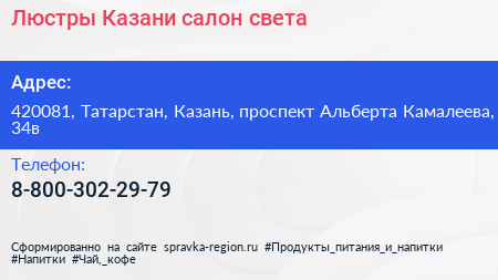 Люстры Казани, салон света по адресу 420081, Татарстан, Казань, проспект Альберта Камалеева, 34в в дальнейшем Организация, размещена в следующих категориях:
