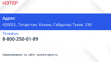 НЭТЕР по адресу 420021, Татарстан, Казань, Габдуллы Тукая, 130 в дальнейшем Организация, размещена в следующих категориях:
