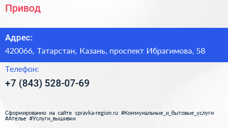 Привод по адресу 420066, Татарстан, Казань, проспект Ибрагимова, 58 в дальнейшем Организация, размещена в следующих категориях: