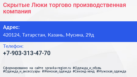 Скрытые Люки, торгово-производственная компания по адресу 420124, Татарстан, Казань, Мусина, 29д в дальнейшем Организация, размещена в следующих категориях: