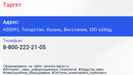 Таргет по адресу 420095, Татарстан, Казань, Восстания, 100 к266д в дальнейшем Организация, размещена в следующих категориях: