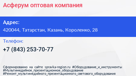 Асферум, оптовая компания по адресу 420044, Татарстан, Казань, Короленко, 28 в дальнейшем Организация, размещена в следующих категориях: