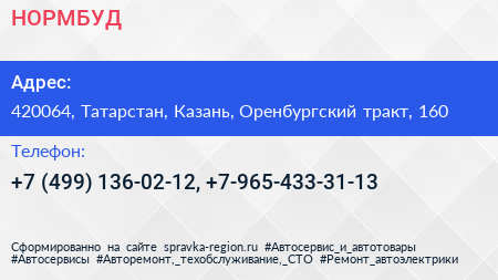 НОРМБУД по адресу 420064, Татарстан, Казань, Оренбургский тракт, 160 в дальнейшем Организация, размещена в следующих категориях: