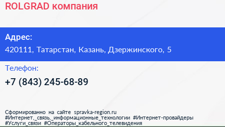 ROLGRAD, компания по адресу 420111, Татарстан, Казань, Дзержинского, 5 в дальнейшем Организация, размещена в следующих категориях: