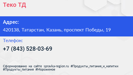 Теко-ТД по адресу 420138, Татарстан, Казань, проспект Победы, 19 в дальнейшем Организация, размещена в следующих категориях: