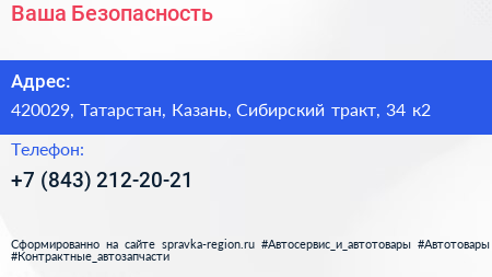 Ваша Безопасность по адресу 420029, Татарстан, Казань, Сибирский тракт, 34 к2 в дальнейшем Организация, размещена в следующих категориях: