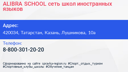 ALIBRA SCHOOL, сеть школ иностранных языков по адресу 420034, Татарстан, Казань, Лушникова, 10а в дальнейшем Организация, размещена в следующих категориях: