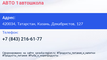 АВТО-1, автошкола по адресу 420034, Татарстан, Казань, Декабристов, 127 в дальнейшем Организация, размещена в следующих категориях: