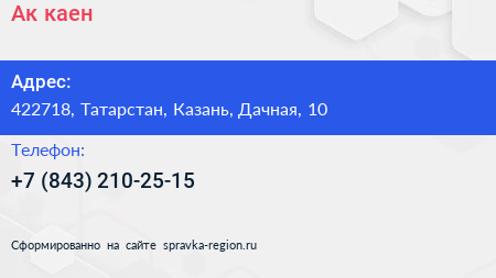 Ак каен по адресу 422718, Татарстан, Казань, Дачная, 10 в дальнейшем Организация, размещена в следующих категориях: