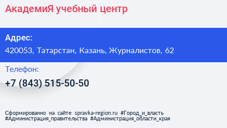 АкадемиЯ, учебный центр по адресу 420053, Татарстан, Казань, Журналистов, 62 в дальнейшем Организация, размещена в следующих категориях:
