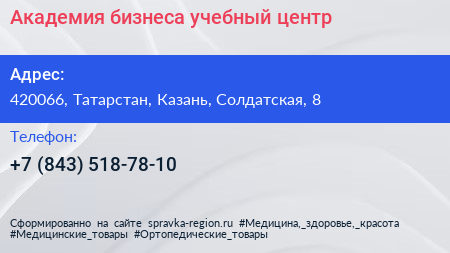 Академия бизнеса, учебный центр по адресу 420066, Татарстан, Казань, Солдатская, 8 в дальнейшем Организация, размещена в следующих категориях: