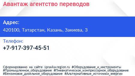 Авантаж, агентство переводов по адресу 420100, Татарстан, Казань, Закиева, 3 в дальнейшем Организация, размещена в следующих категориях: