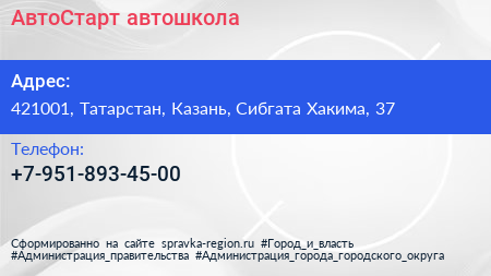 АвтоСтарт, автошкола по адресу 421001, Татарстан, Казань, Сибгата Хакима, 37 в дальнейшем Организация, размещена в следующих категориях: