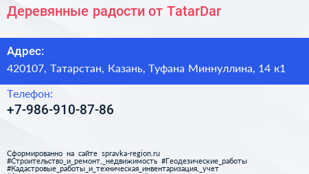 Деревянные радости от TatarDar по адресу 420107, Татарстан, Казань, Туфана Миннуллина, 14 к1 в дальнейшем Организация, размещена в следующих категориях: