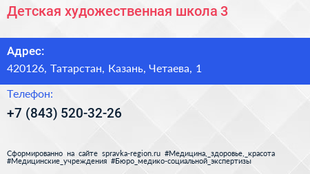 Детская художественная школа №3 по адресу 420126, Татарстан, Казань, Четаева, 1 в дальнейшем Организация, размещена в следующих категориях: