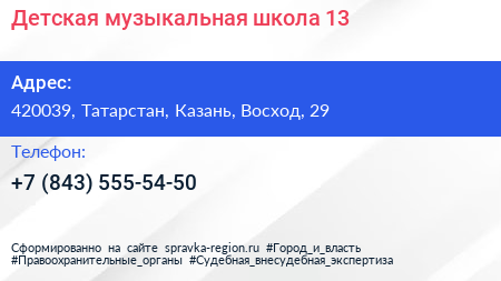 Детская музыкальная школа №13 по адресу 420039, Татарстан, Казань, Восход, 29 в дальнейшем Организация, размещена в следующих категориях: