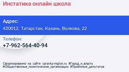 Инстатика, онлайн-школа по адресу 420012, Татарстан, Казань, Волкова, 22 в дальнейшем Организация, размещена в следующих категориях: