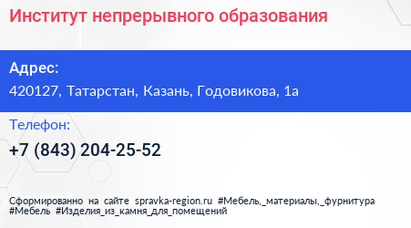 Институт непрерывного образования по адресу 420127, Татарстан, Казань, Годовикова, 1а в дальнейшем Организация, размещена в следующих категориях: