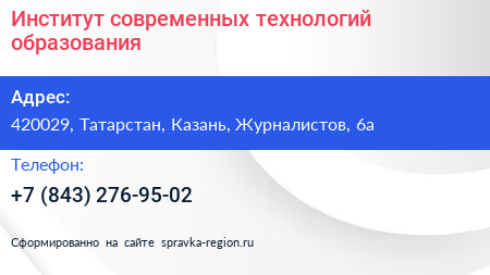 Институт современных технологий образования по адресу 420029, Татарстан, Казань, Журналистов, 6а в дальнейшем Организация, размещена в следующих категориях: