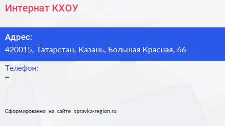 Интернат, КХОУ по адресу 420015, Татарстан, Казань, Большая Красная, 66 в дальнейшем Организация, размещена в следующих категориях: