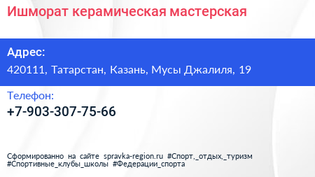 Ишморат, керамическая мастерская по адресу 420111, Татарстан, Казань, Мусы Джалиля, 19 в дальнейшем Организация, размещена в следующих категориях: