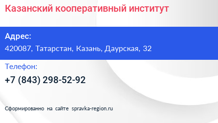 Казанский кооперативный институт по адресу 420087, Татарстан, Казань, Даурская, 32 в дальнейшем Организация, размещена в следующих категориях: